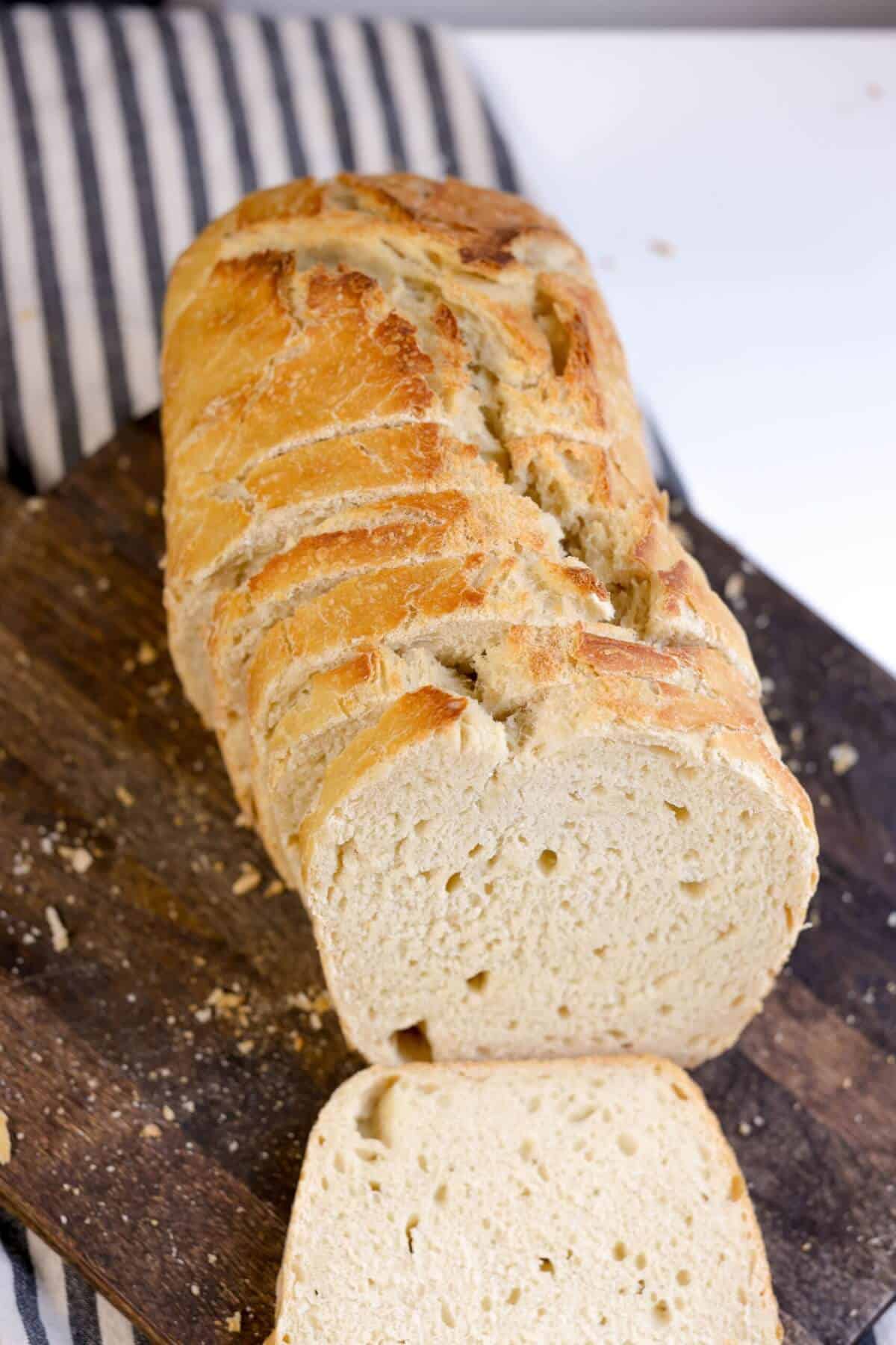 Gently deflate, divide into two equal portions (or one large loaf), shape into tight logs, and place seam-side down in greased loaf pans.